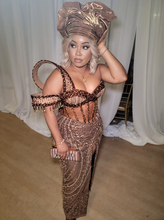We went back to the basics to define what makes EVUE the epitome of Cultural Opulence. Featuring our very first custom couture experience, our custom designs are all you need to awaken your ancestral roots. Take a look into our uniquely crafted pieces that will be timeless in your wardrobe no matter the season and/or occasion.